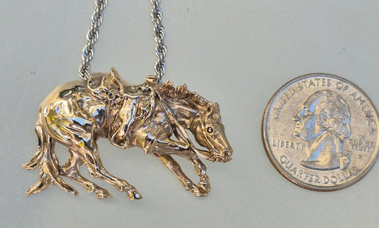 Artist original Three Horse Slider Running Horses Necklace Sterling Silver Equestrian Jewelry