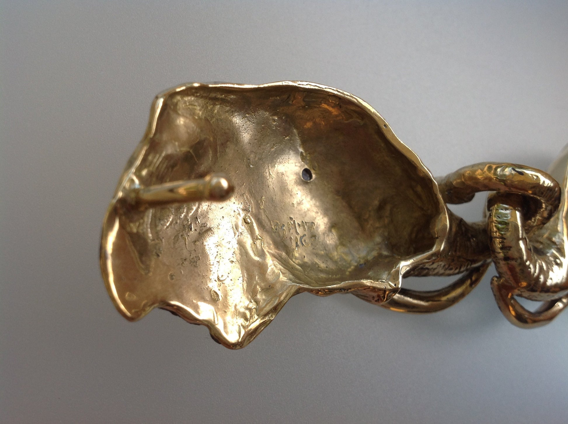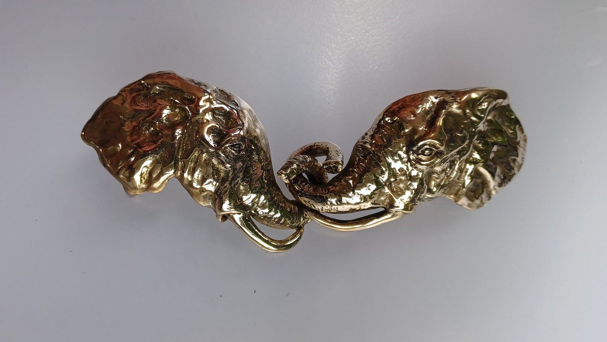Articulating Elephants belt buckle Sculpture jewelry in bronze NO STONES in eyes. Zimmer jewelry