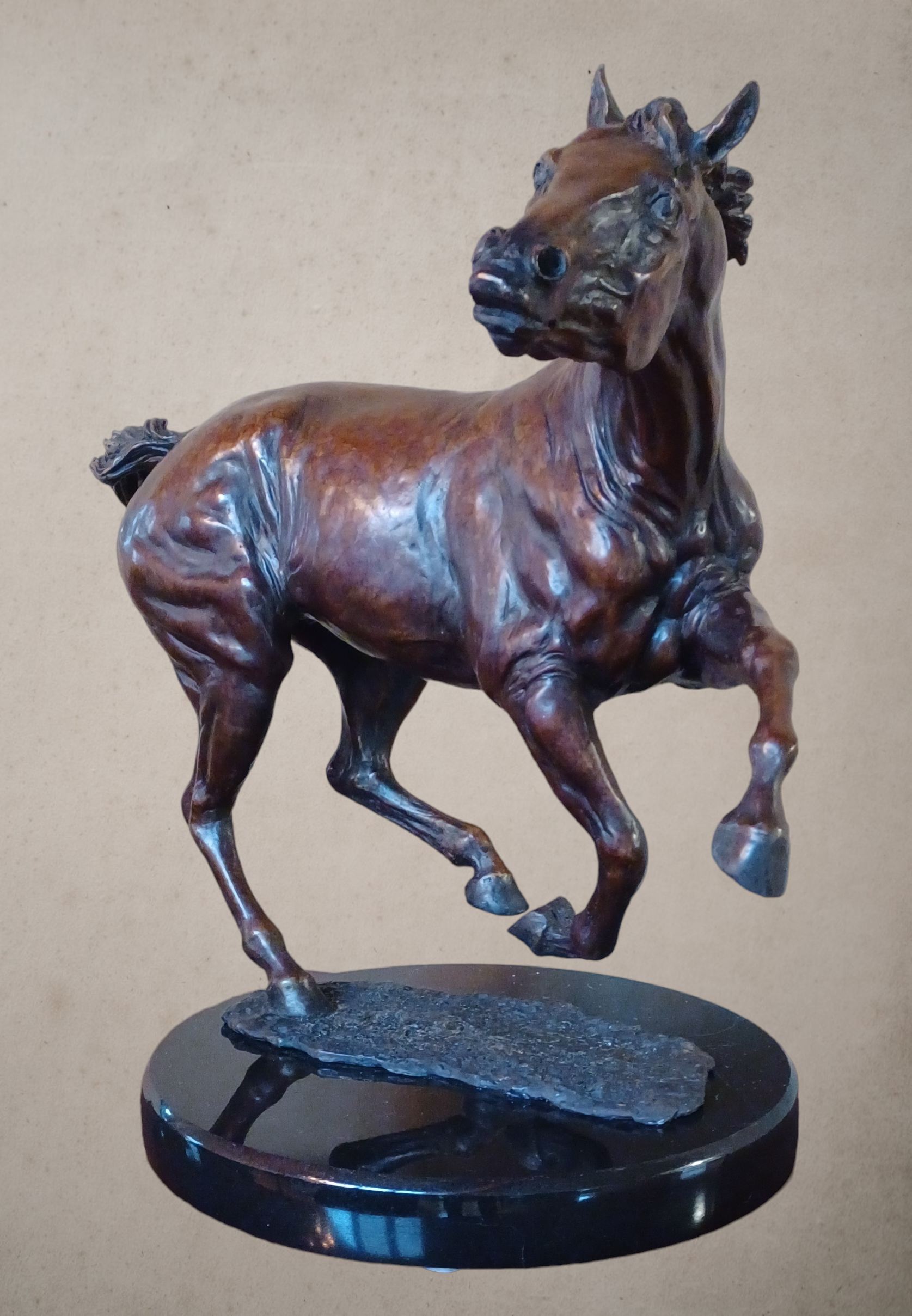 Bronze Horse Sculpture AVAILABLE NOW. Sculpture edition, first casting 1/5 of "Unhinged". 17" tall. Beverly Zimmer Forge Hill Sculpture