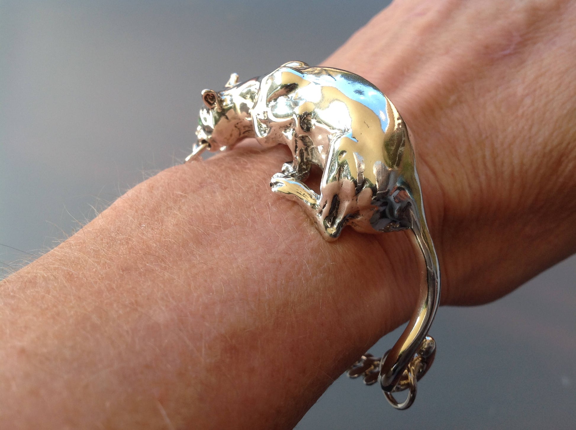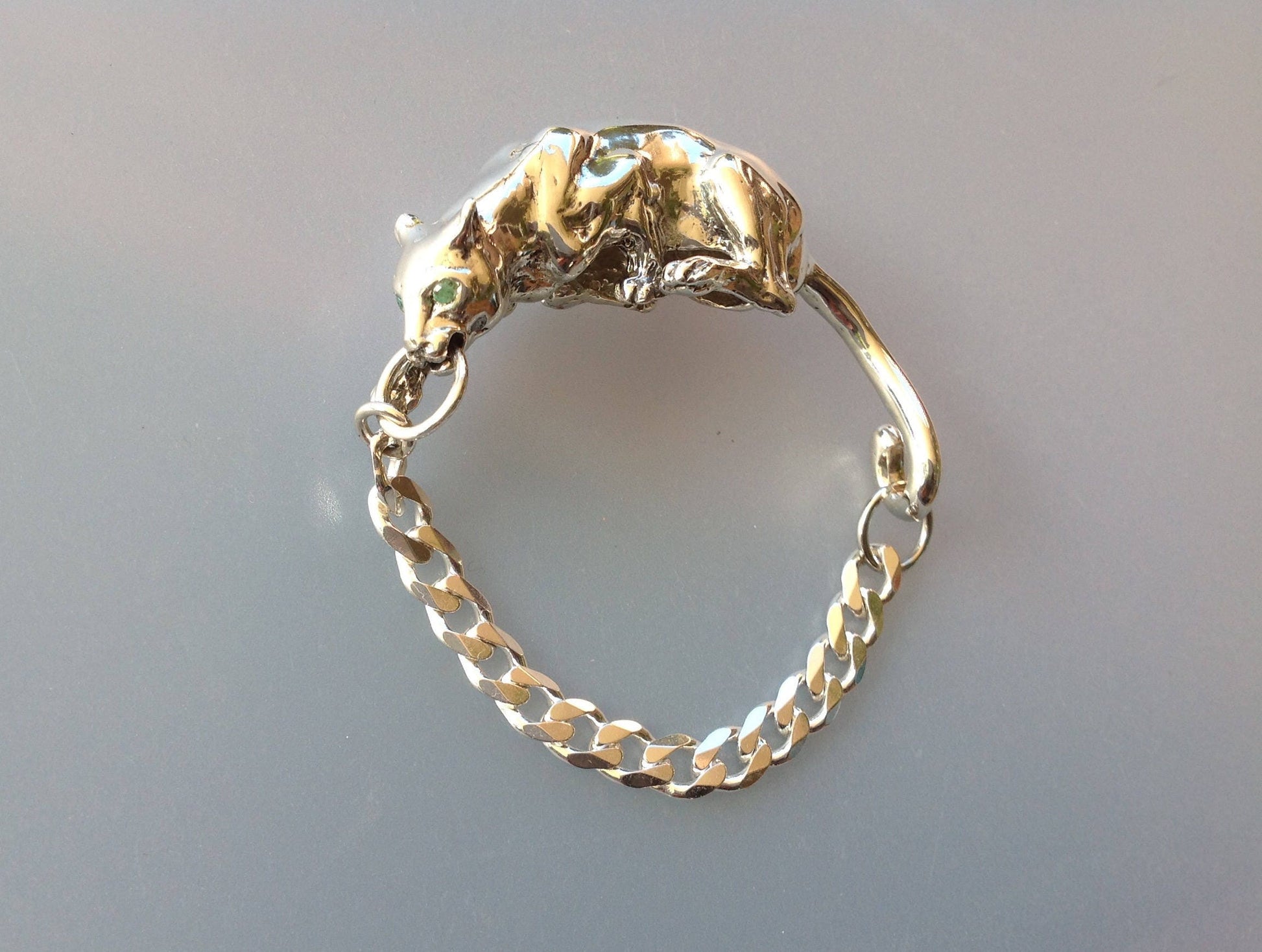 Custom Order crouching Panther cast in sterling silver sculpture bracelet artist original.