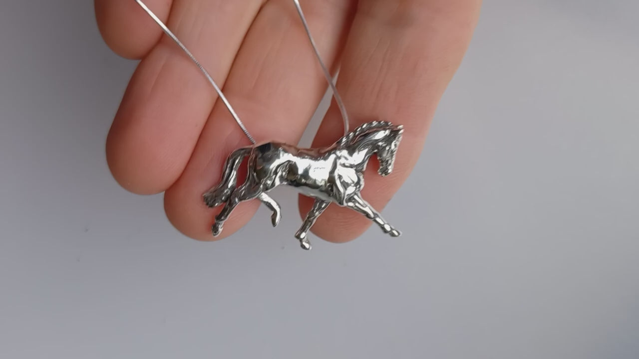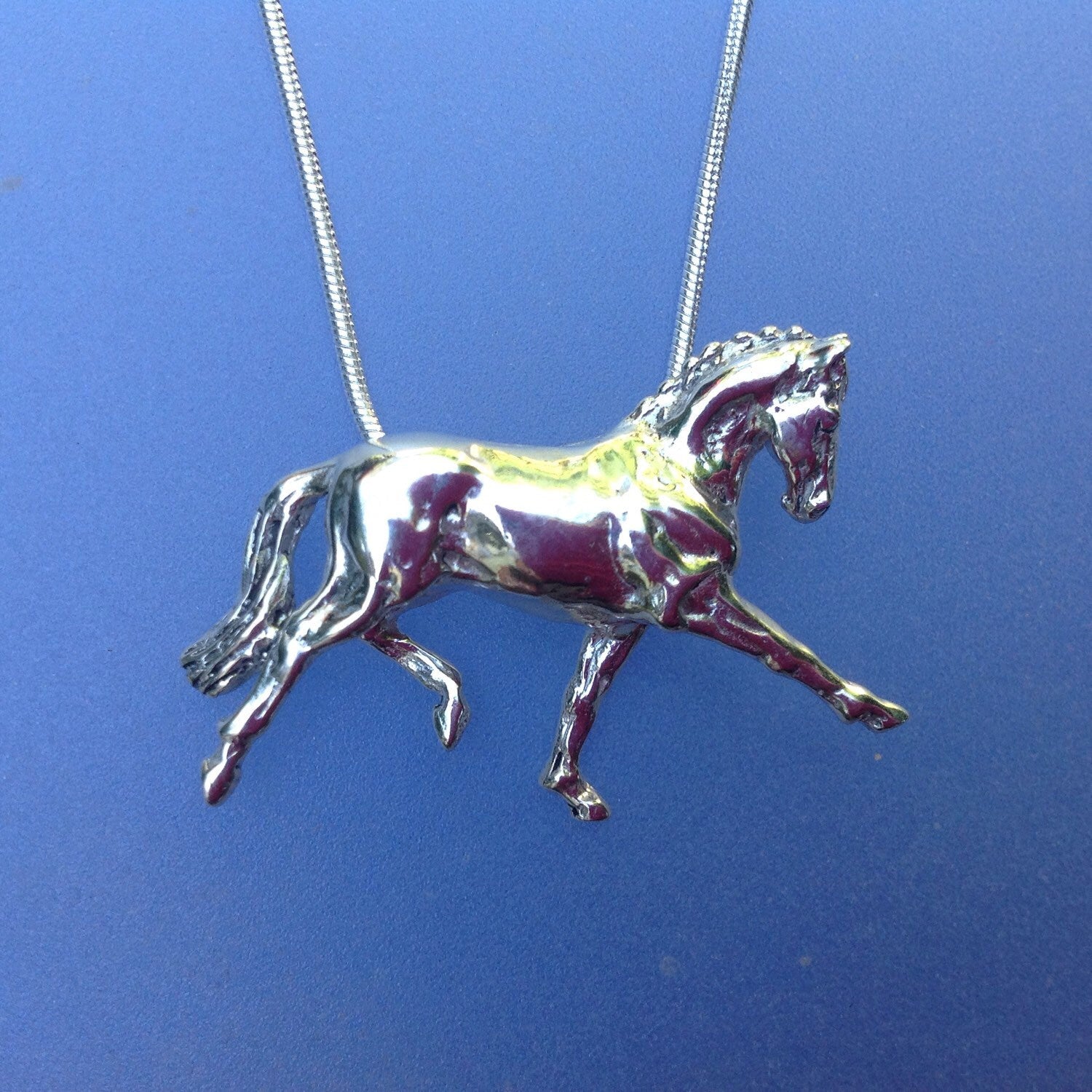 Dressage horse extended trot necklace STERLING SILVER pendant and chain Equestrian jewelry gift