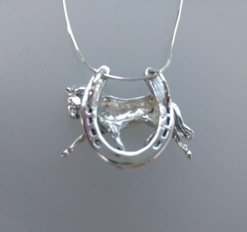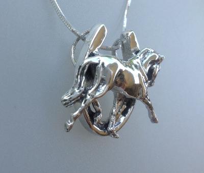Dressage Horse Horseshoe Large Sterling Silver pendant and chain. Beverly Zimmer design, signed