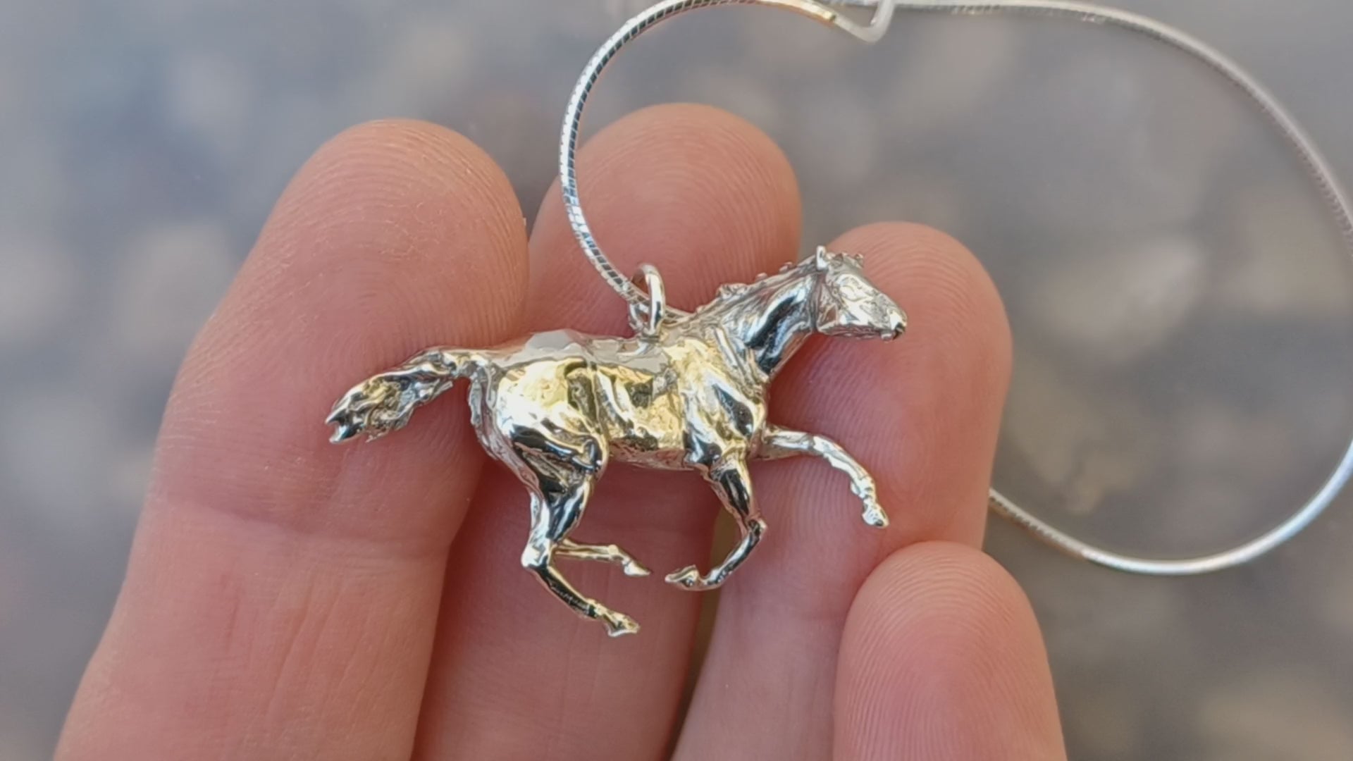 Galloping Mare pendant and chain cast in sterling silver.