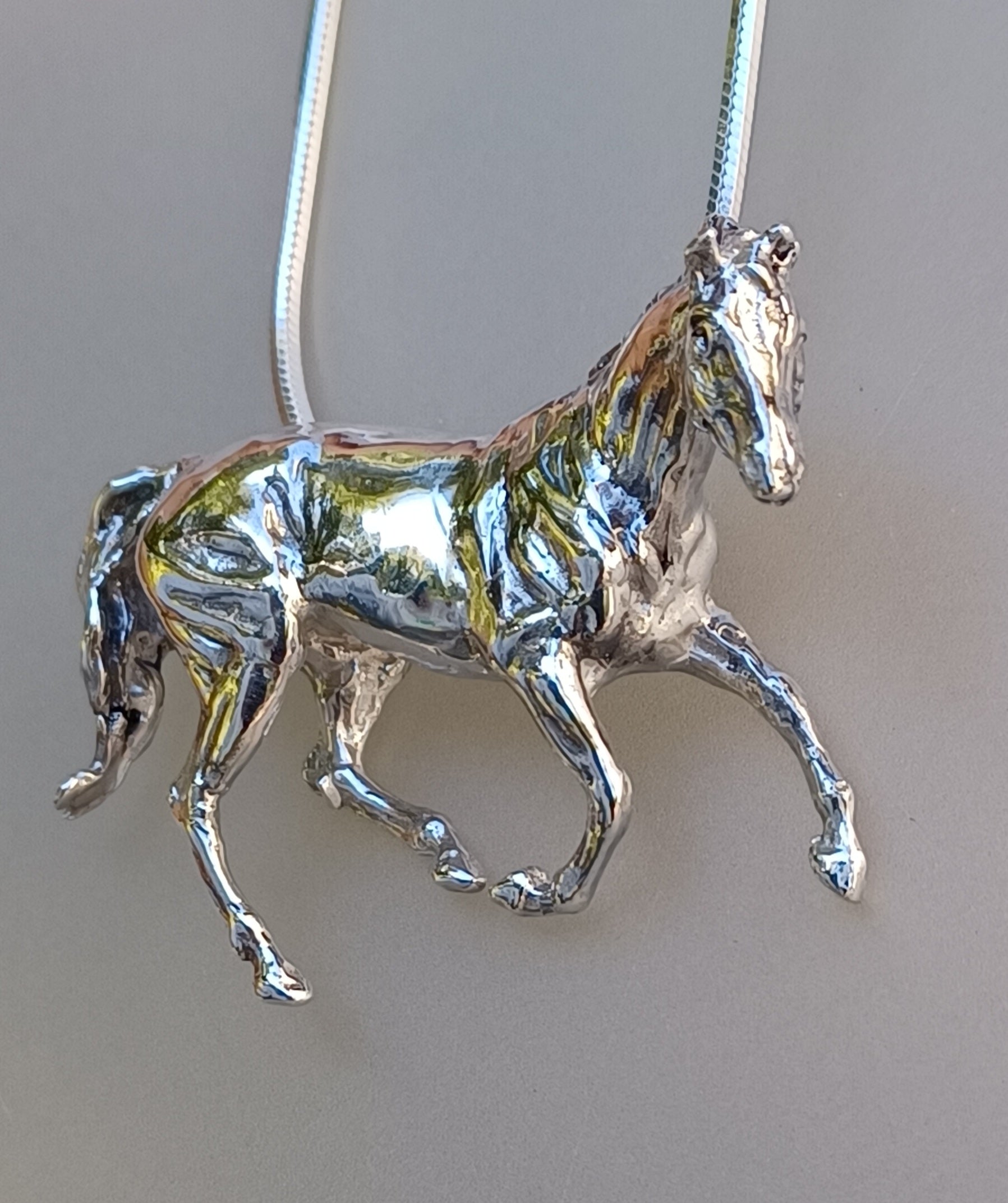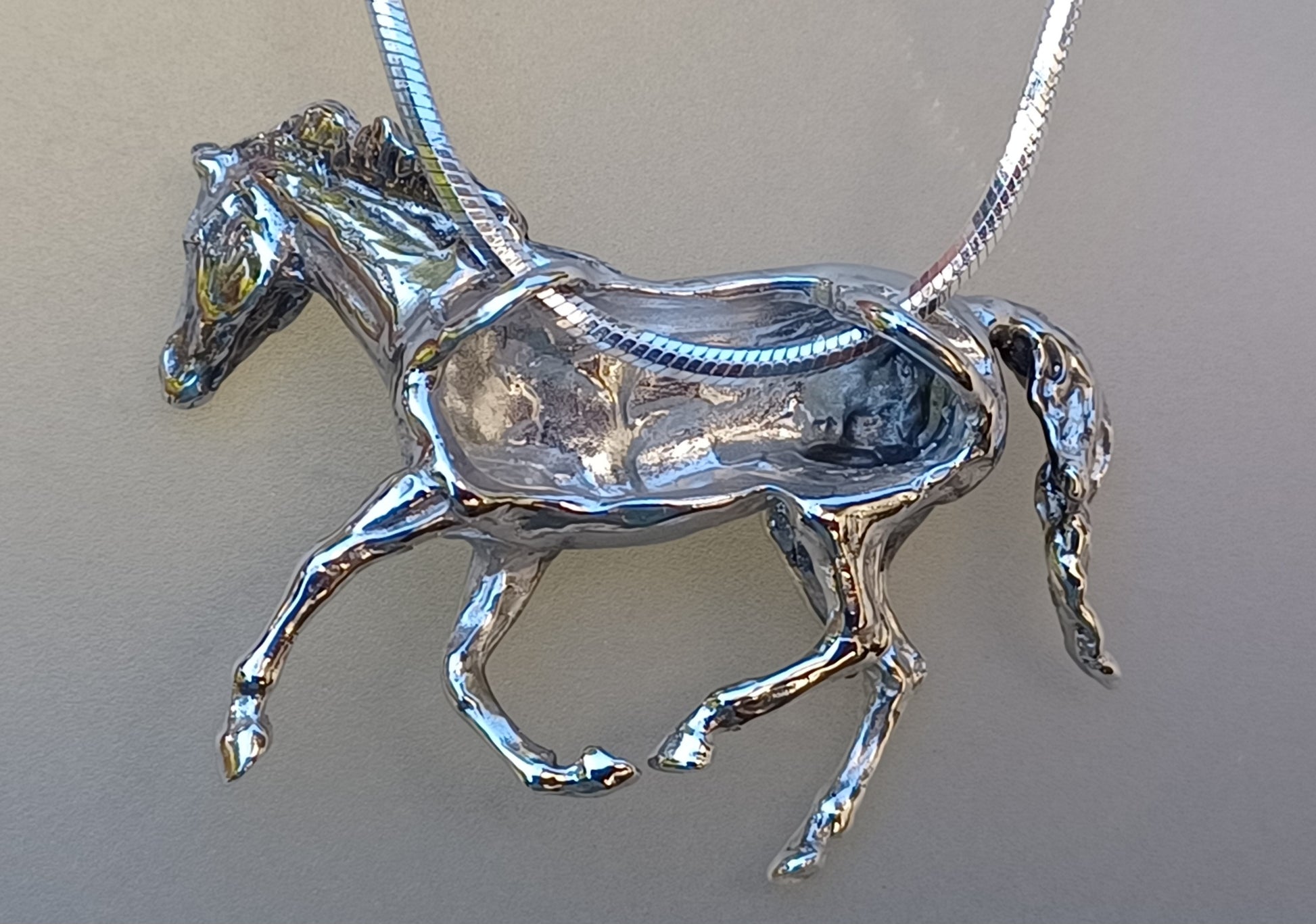 Galloping horse pendant cast in an upgraded .925 sterling silver.