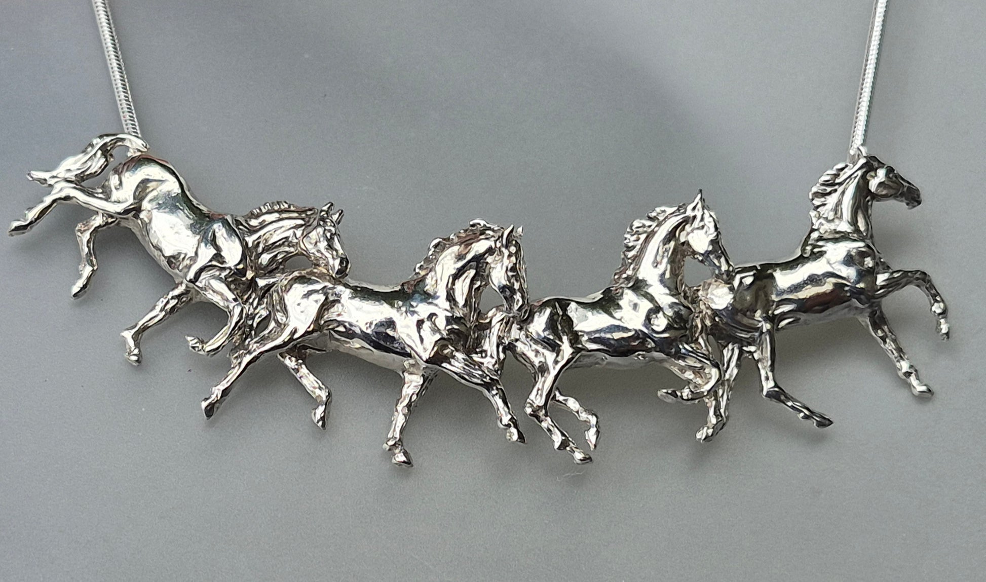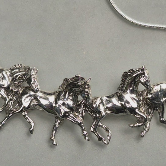 Four Horses Sterling Silver Slider Pendant and Chain Gorgeous Equestrian Jewelry