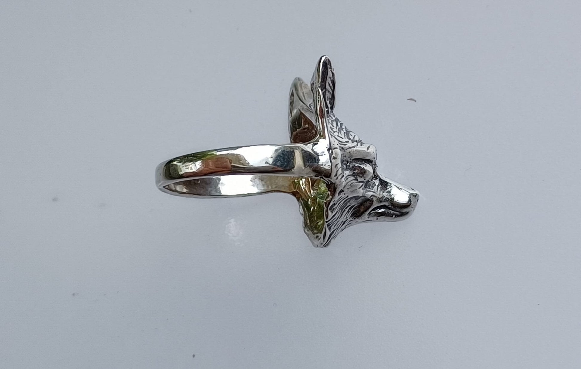 Fox mask ring size 7 sterling silver Peridot stone eyes Zimmer