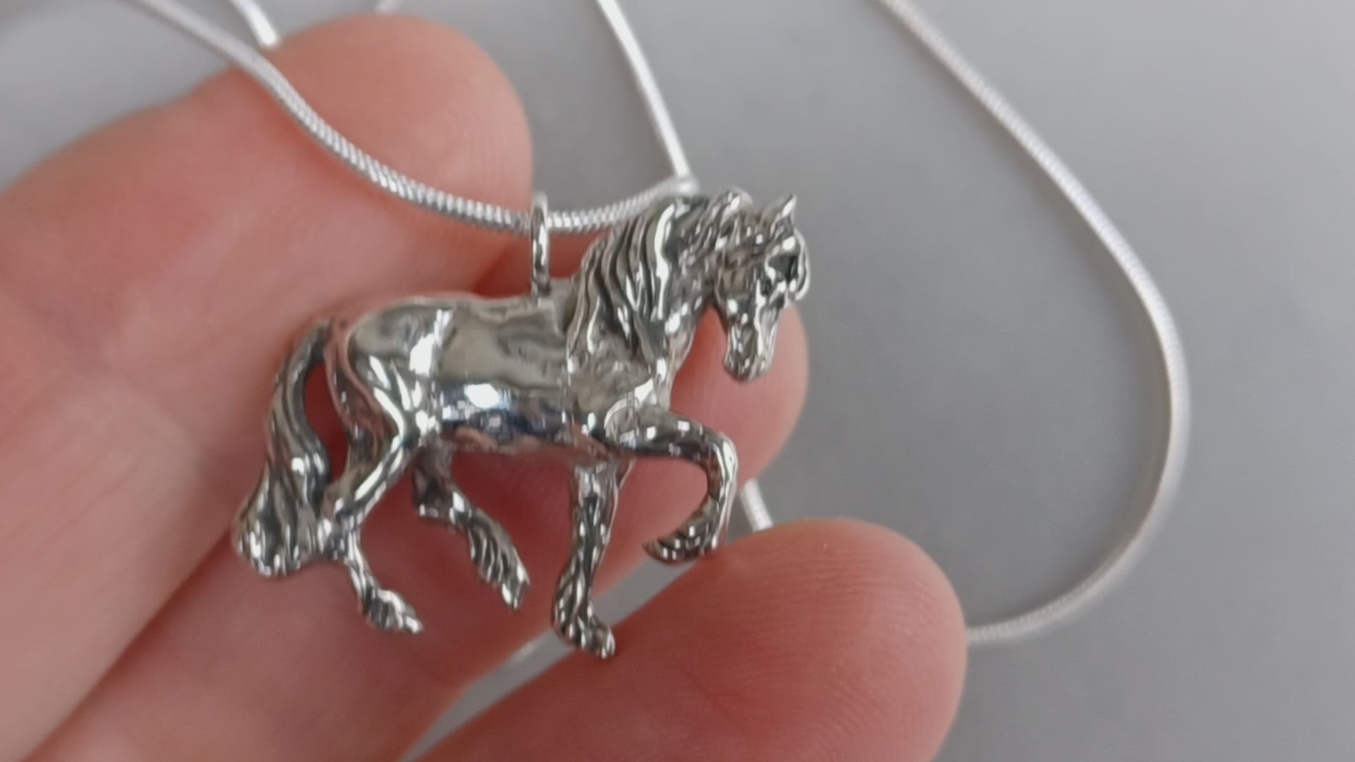 Friesian horse necklace SOLID sterling silver pendant and chain, jewelry Forge Hill Sculpture Equestrian horse jewelry Zimmer