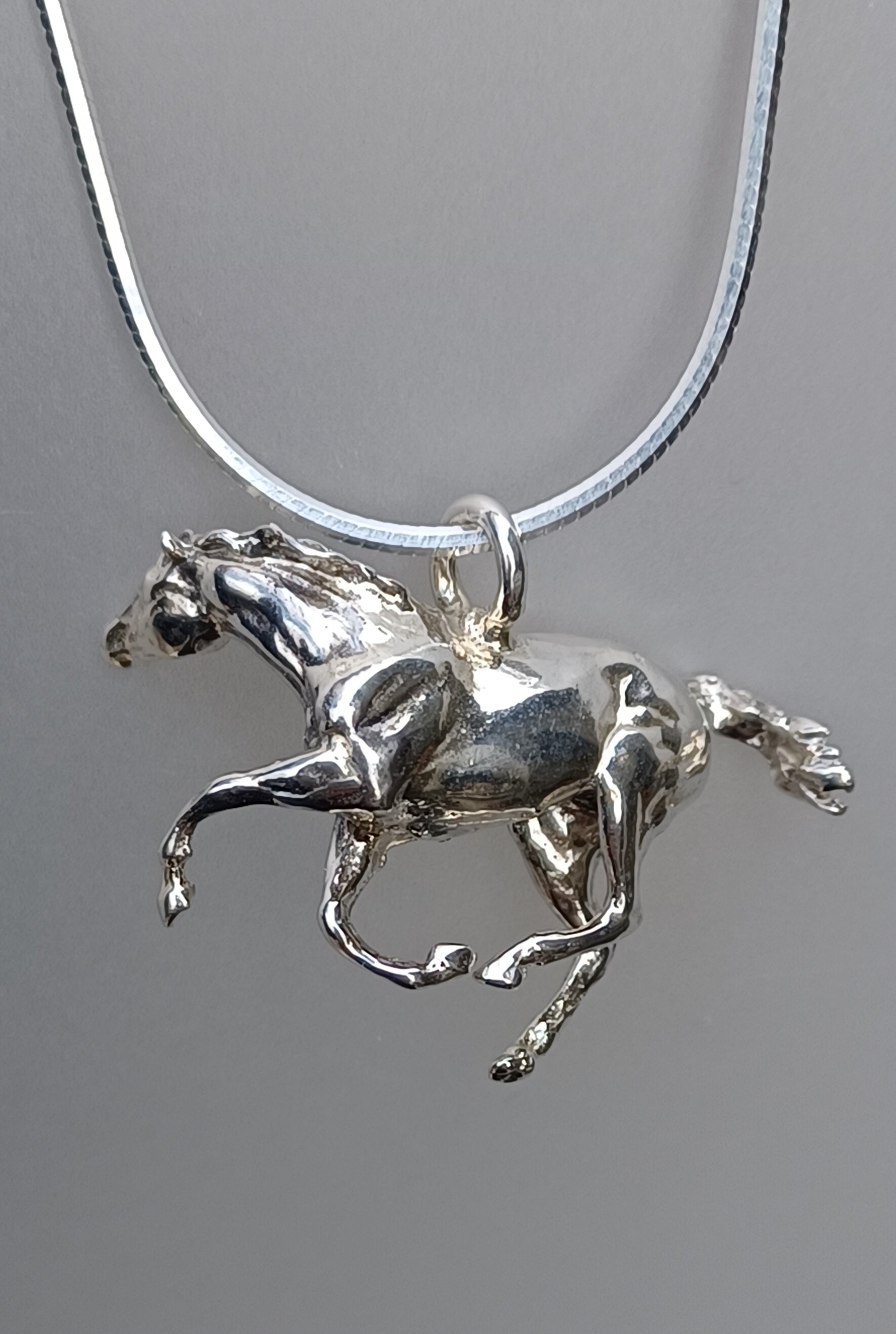 SMALL VERSION Galloping Mare pendant and chain cast in sterling silver.