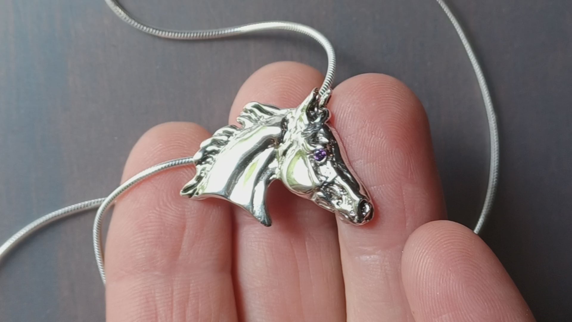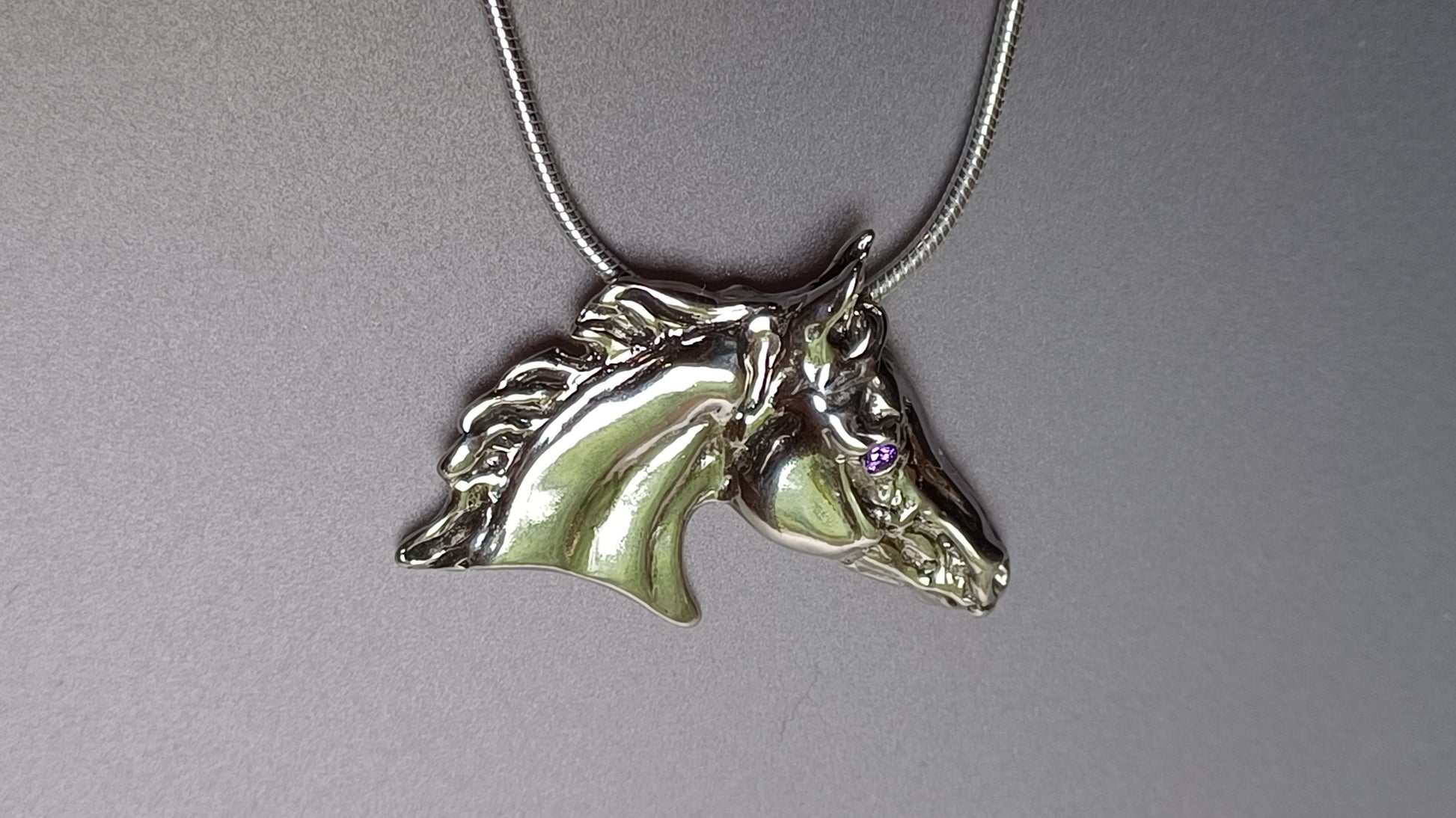 This listing is for the Horse head pendant with a amethyst stone set eye. Just a little sparkle and it really sets the piece off beautifully! If you would prefer a different stone set in the horse's eye, please let me know.