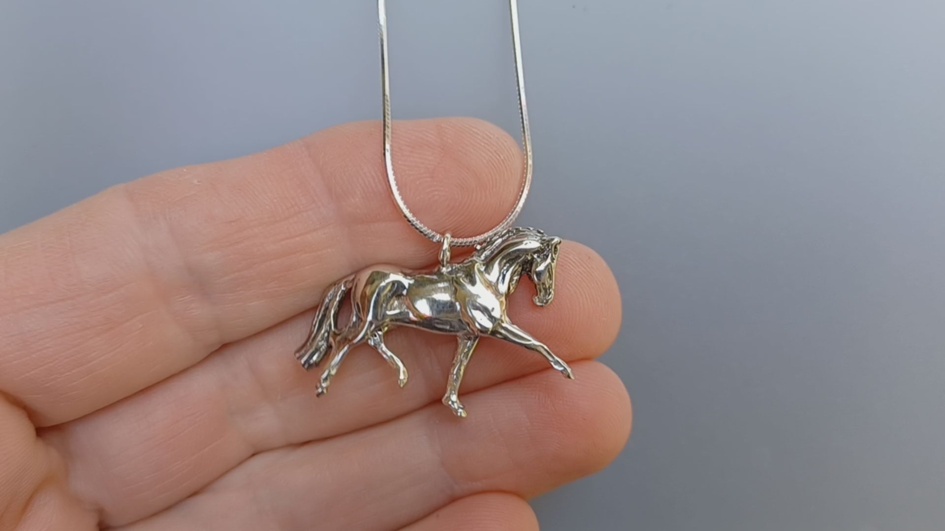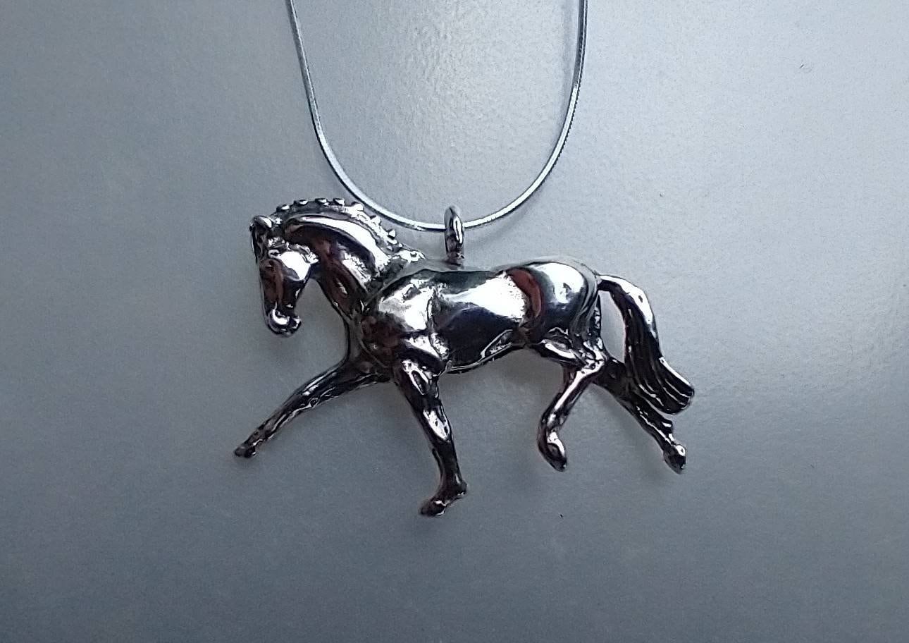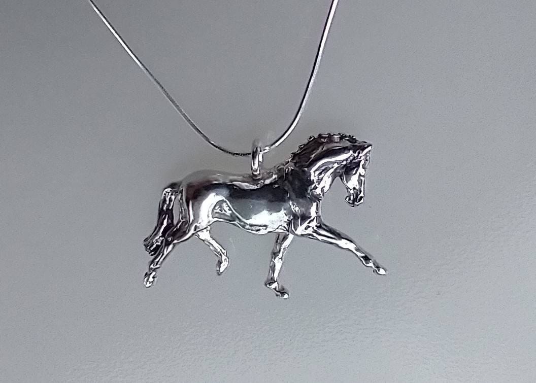 Horse Jewelry dressage extended trot sterling silver. Large pendant and chain Zimmer Best Prices on Silver Horses