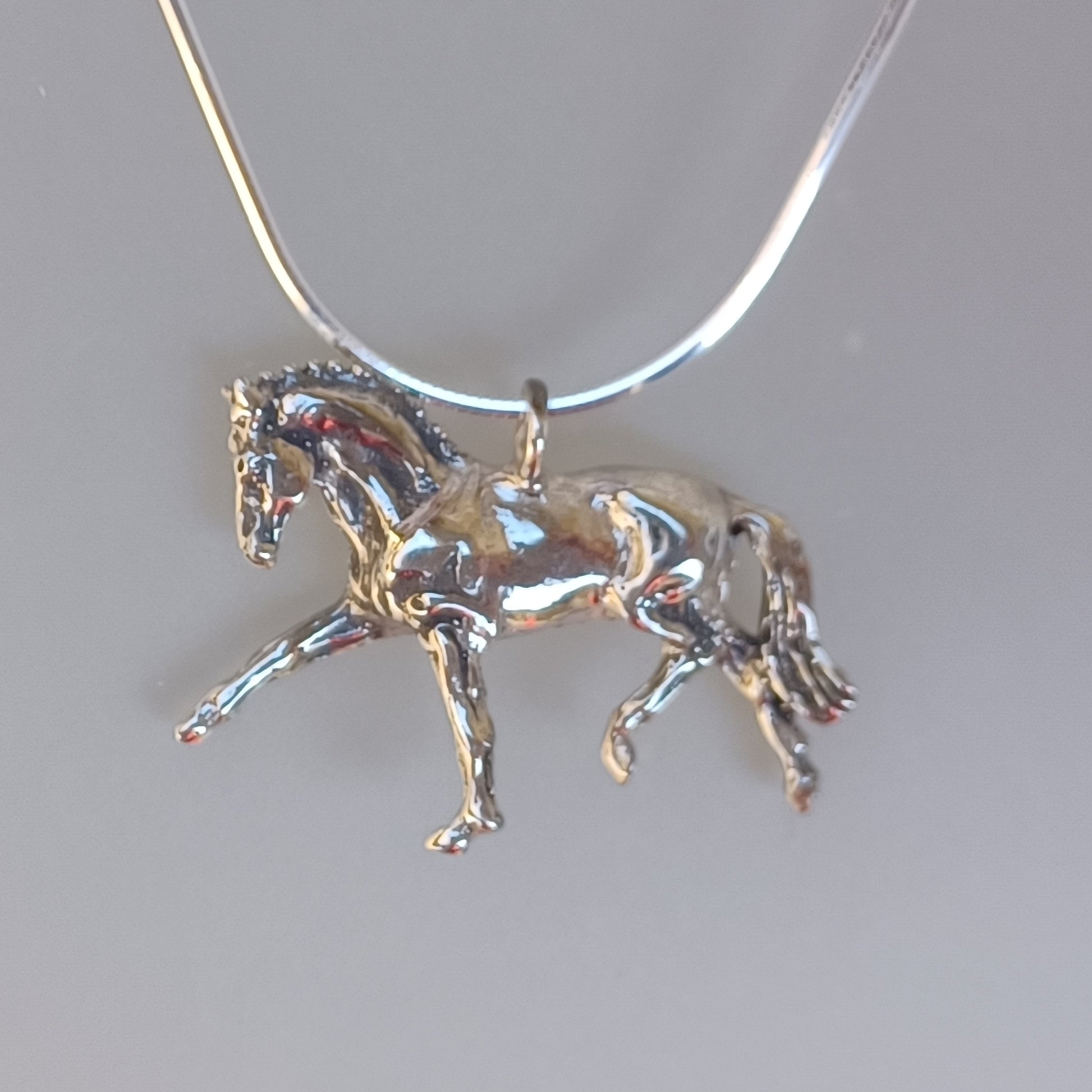 Horse Jewelry dressage extended trot sterling silver. SOLID sterling silver pendant and chain Zimmer Best Prices on Silver Horses