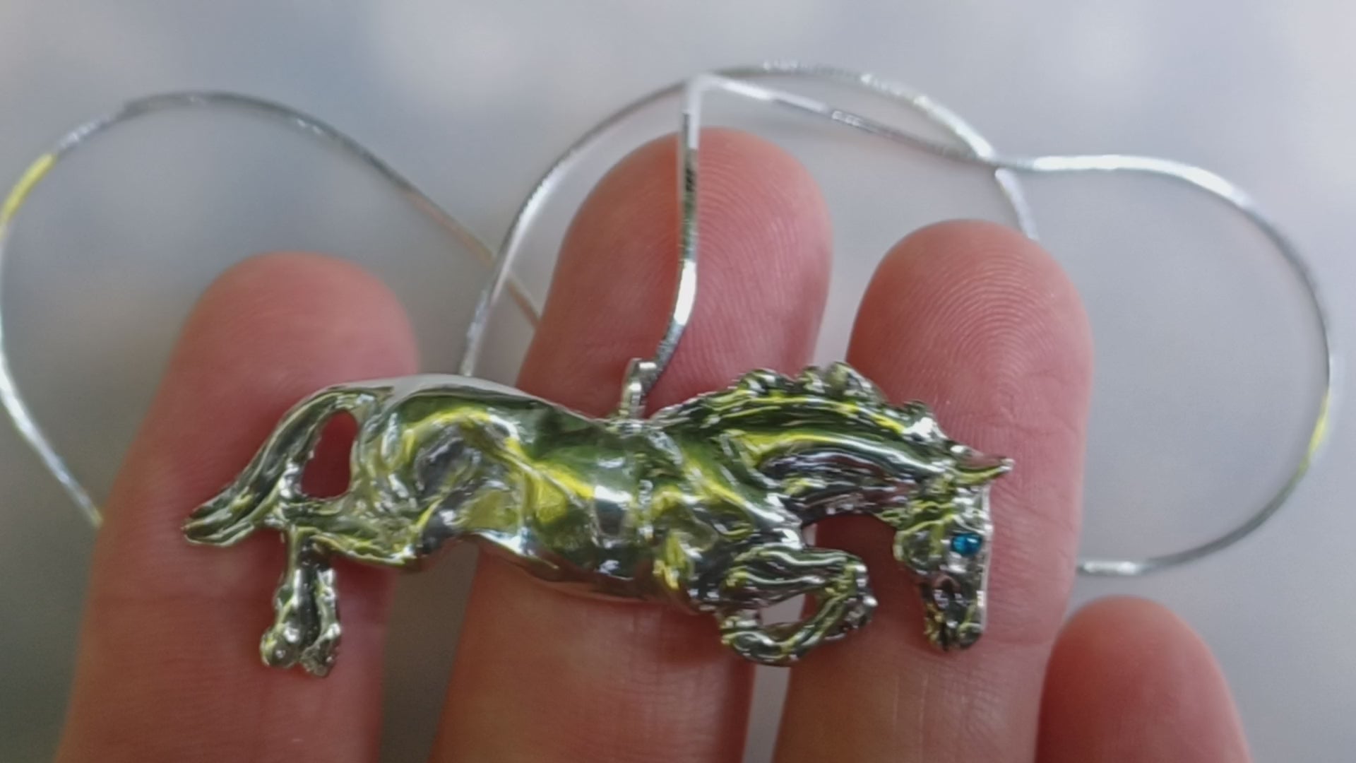 Jumper pendant and chain sterling silver stone set eye. Forge Hill Sculpture