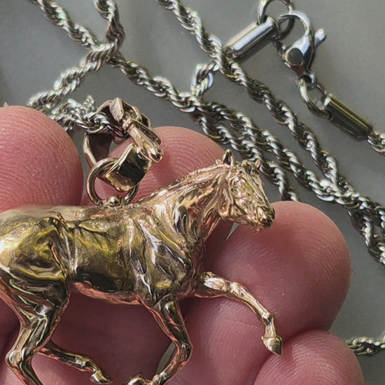 Large Bronze Galloping Horse and buckle bail Pendant and Stainless Steel Chain