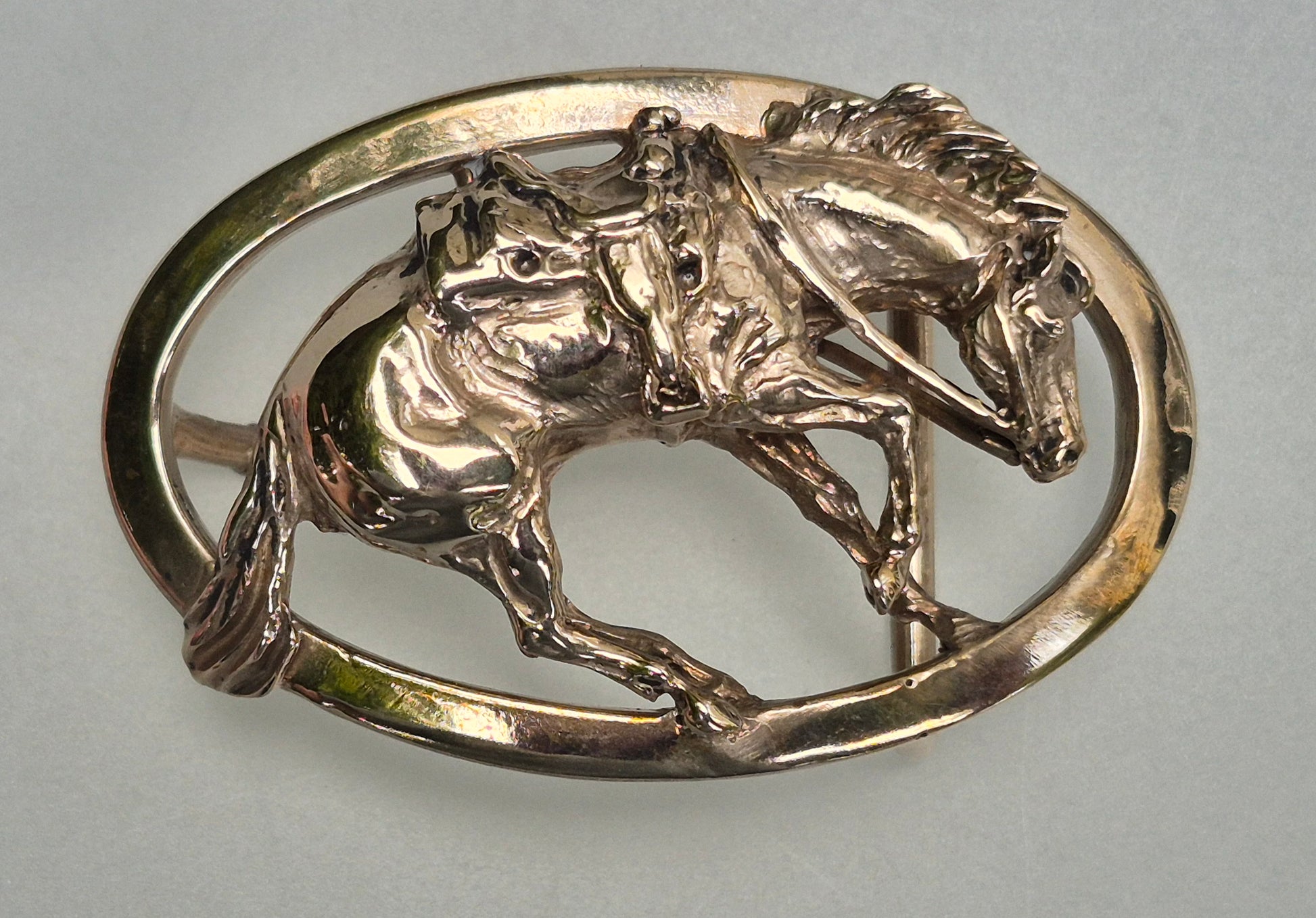Reining Horse Belt buckle in bronze Sculptural Horse Jewelry Forge Hill Sculpture