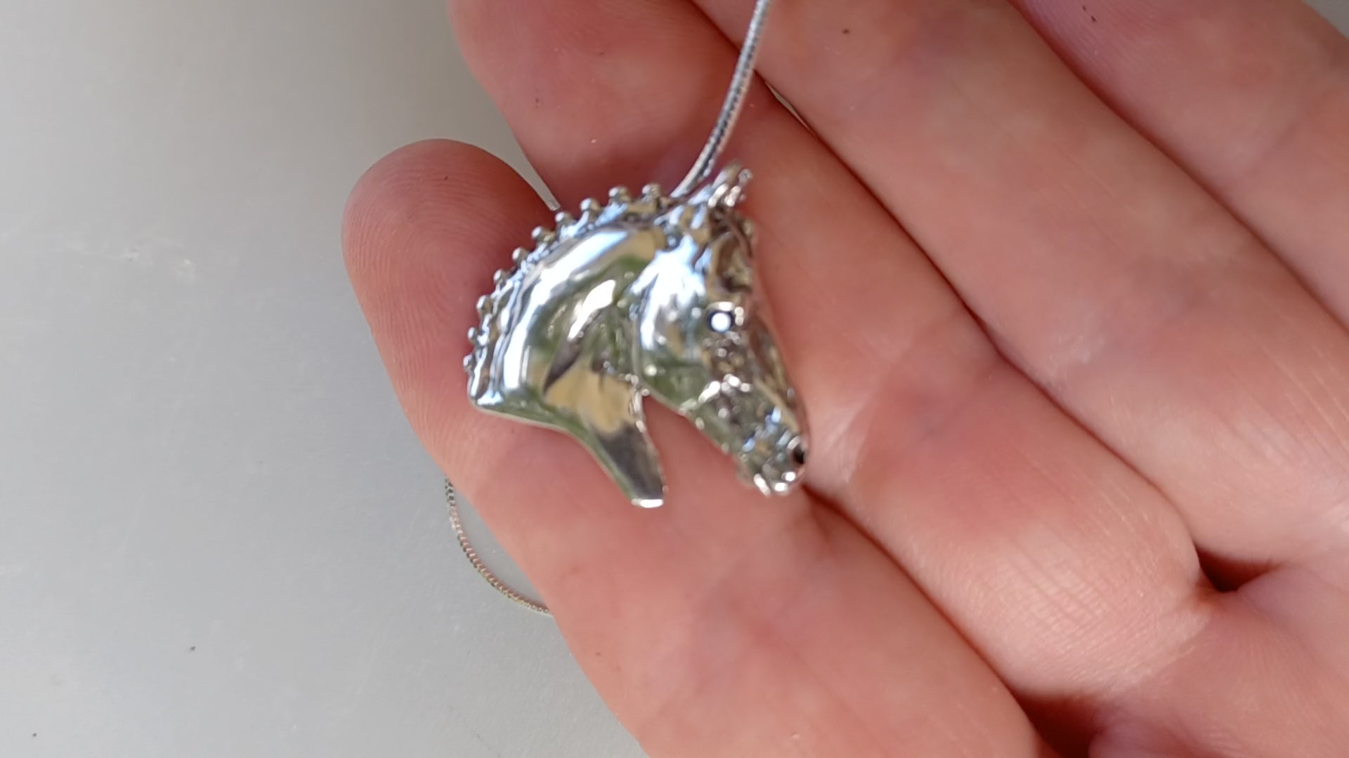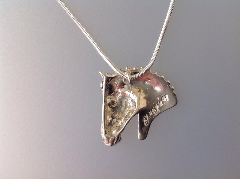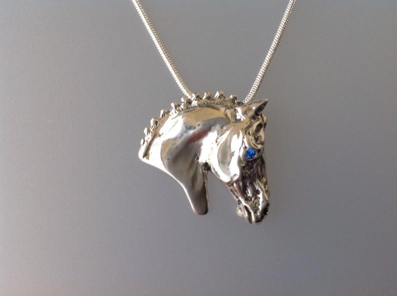 Show horse head pendant and chain. Stone set eye Equestrian jewelry