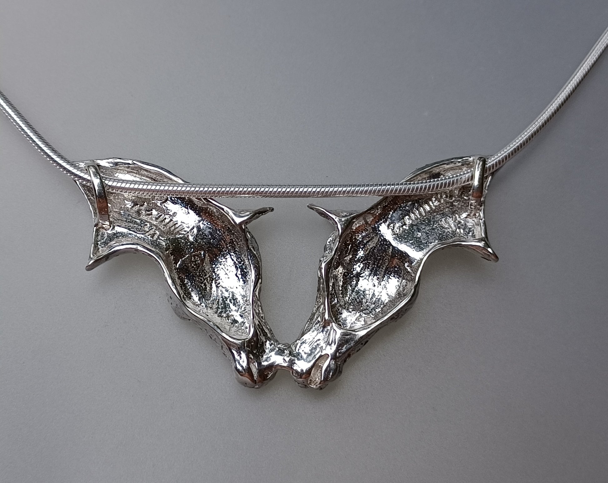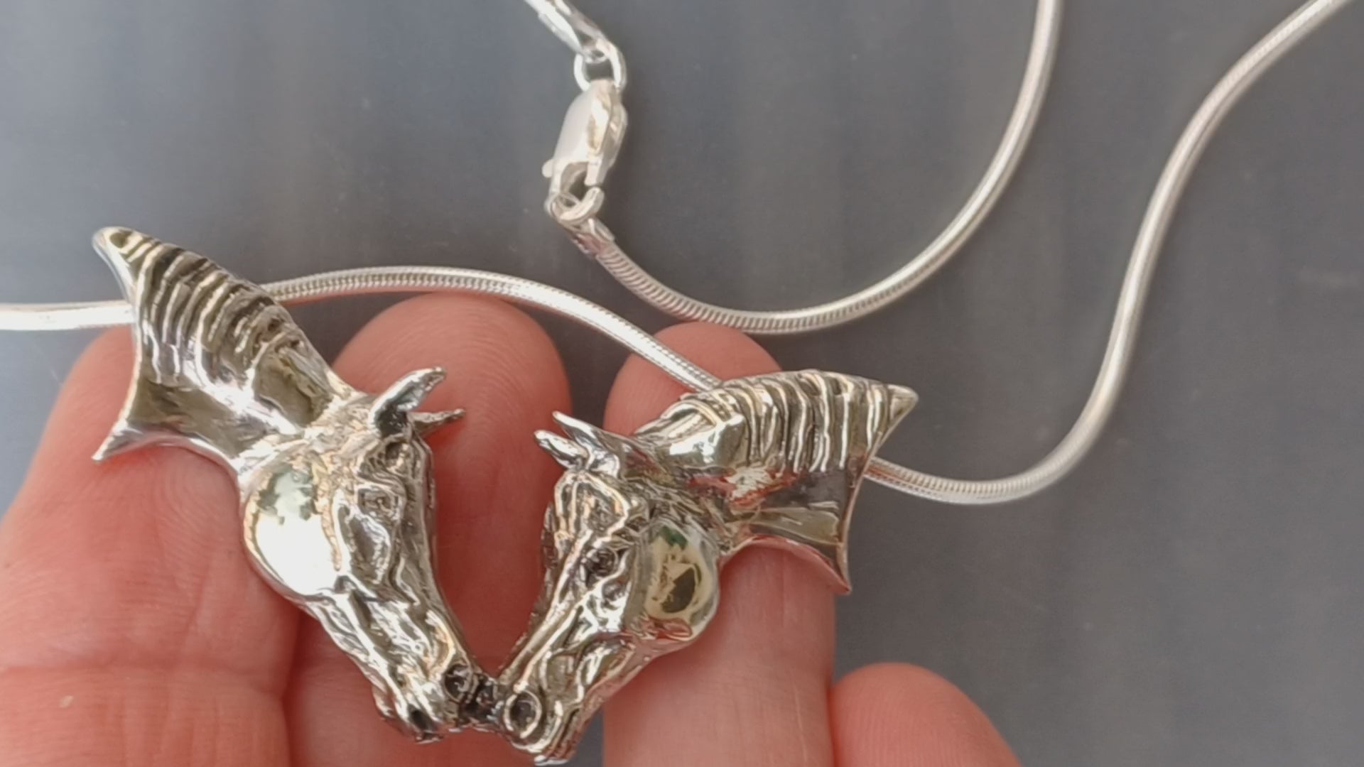Thoroughbreds Nose to Nose Affectionate Pendant Large Sterling Silver, Stone Set Eyes, with heavy chain