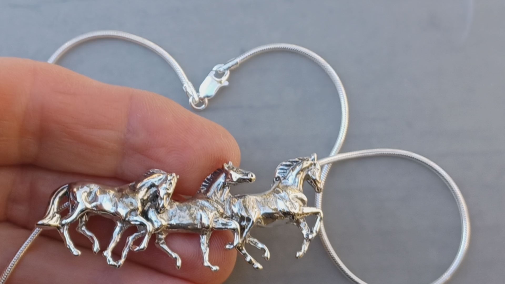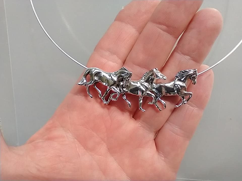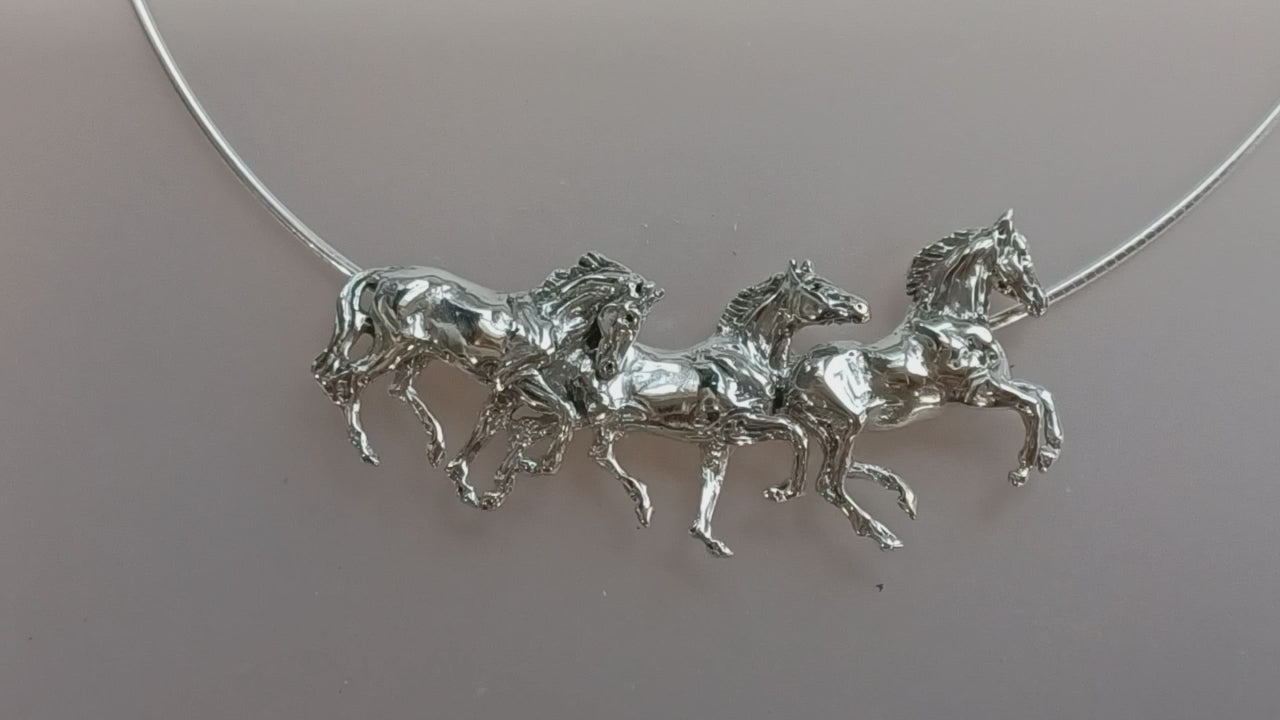 Three Running Horses Necklace Sterling Silver with Heavy SNAKE Chain Beverly Zimmer Original